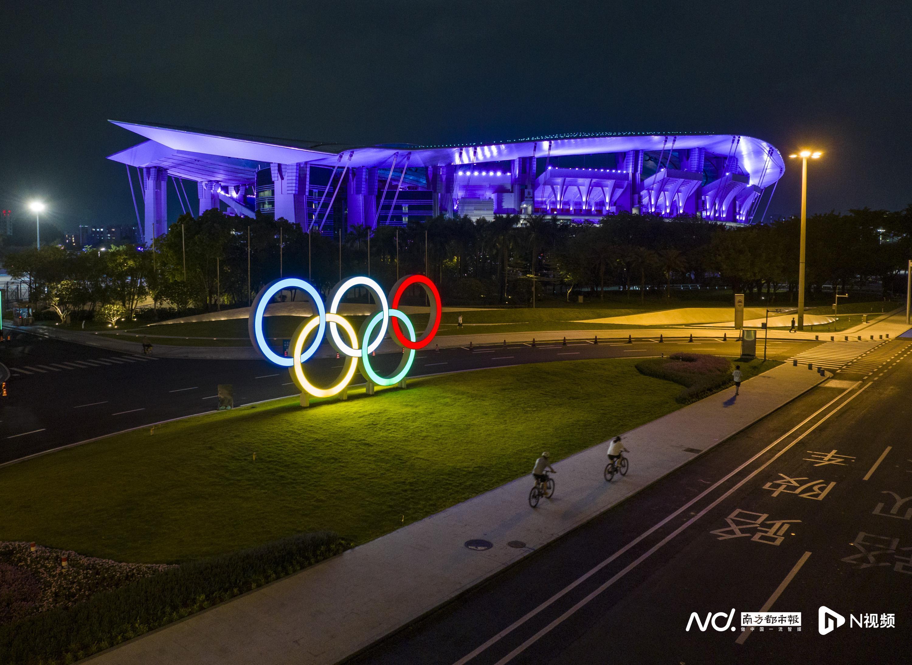 7月16日距十五运会开幕116天,广东奥体亮出五环标志!