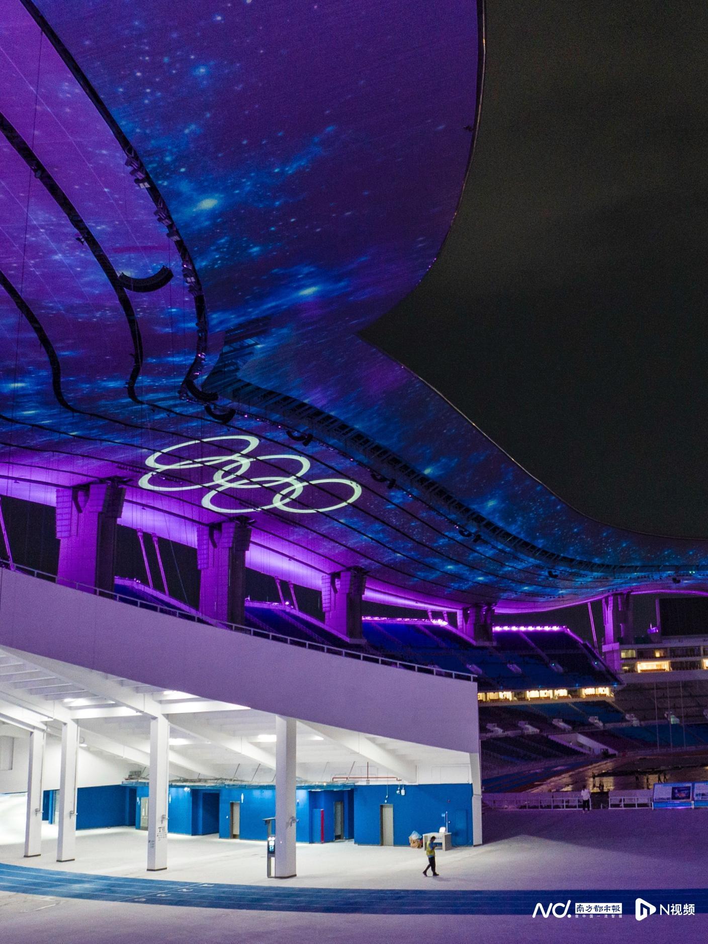 值得留意的是,黄村奥体本次亮灯区别于之前仍在改造阶段的试灯不同,已经完成整体改造的奥体中心亮出了奥林匹克的五环标志,奥体中心主运动场场内天花板投影模块也已经上线,其投影出的星空等效果非常壮观。